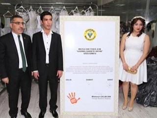 Çiftlerin imzaladığı sözleşmede, "Çıkacak sorunlarımıza, sevgi dilini kullanarak çözüm yolları geliştireceğime, çocuklarımızın iyi yetişmesi için evimizin sıcak, sevimli ve mutlu eden bir ortam olmasını sağlayacağıma, ortak ideallerimizi ömür boyu sevgi, saygı ve güvene dayalı şekilde birlikte yaşamayı hedefleyeceğime, hastalıkta, iyi günde ve kötü günde eşime asla ve asla şiddet uygulamayacağıma namusum ve şerefim üzerine söz veriyorum" ifadeleri yer aldı.