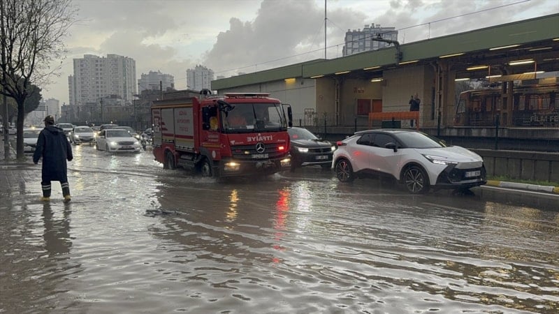 Belediye ve itfaiye ekipleri, yollarda biriken suyun tahliyesi için çalışma başlattı.