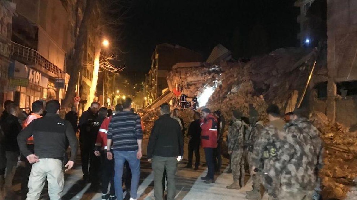 Malatya'da Battalgazi Mahallesi Fuzuli Caddesi üzerinde bulunan ve daha önce Kahramanmaraş merkezli depremlerde bir kısmı yıkılan bina, yaşanan depremin ardından tamamen yıkıldı.