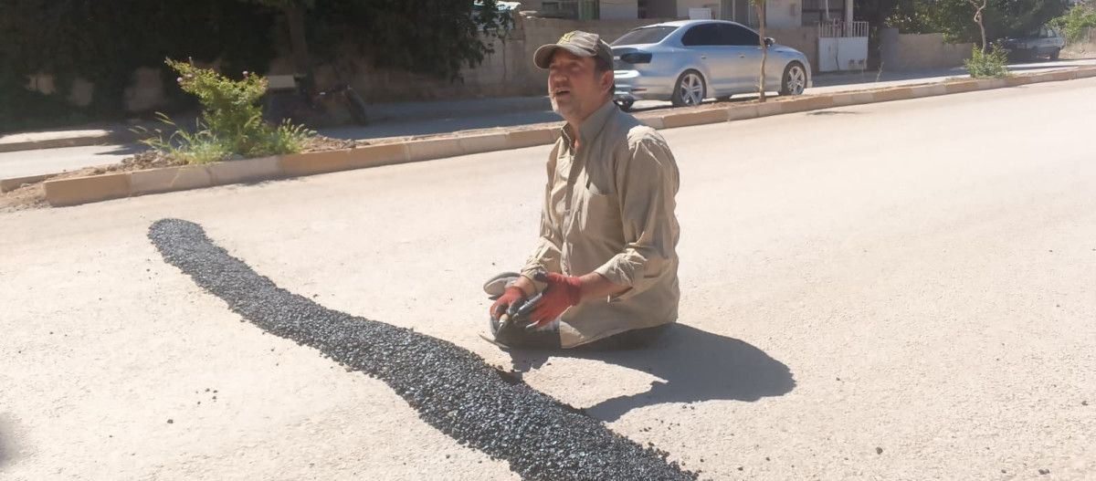 Yerde kendini sürükleyerek asfalt döküp kasis yapan muhtar, tek amacının kazaların önüne geçmek olduğunu dile getirdi.