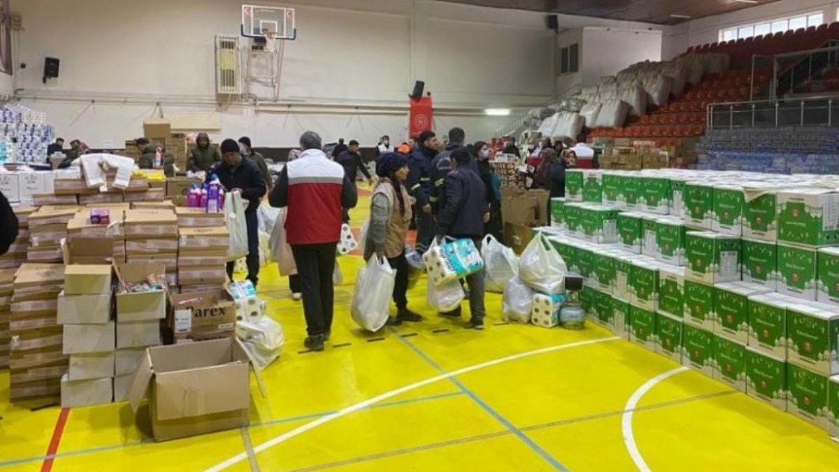 Depremin vurduğu illerden biri olan Adıyaman'da depremzedelere gönderilen yardımlar, sosyal marketlerde toplanıyor.