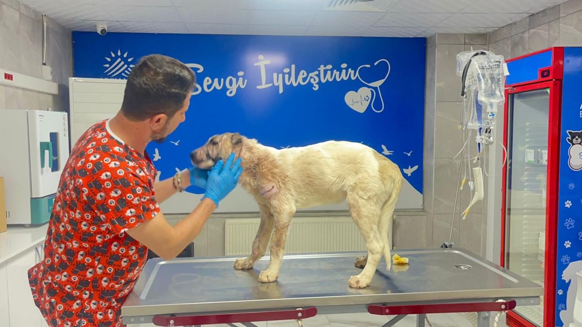 Tedaviye alınan ve 13 yerinden bıçakladığı belirlenen köpeğe 150 dikiş atıldı.