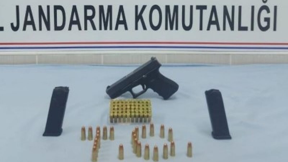 Şahsın üst kontrolüne yapan jandarma ekipleri çevrede yaptığı aramada taşlar arasına gizlenmiş 1 adet tabanca, tabancaya ait 2 adet şarjör ve 75 mermi buldu.