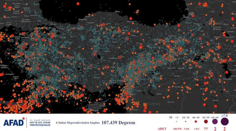 AFAD tarafından her yıl ortalama 24 bin depremin çözümü yapılırken, 6 Şubat’taki Kahramanmaraş merkezli depremlerden bu yana bu sayı 110 bine yaklaştı.