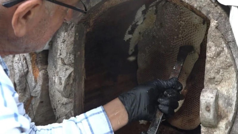“Atölyede kütüğü oyar içini yaparız, getirir ağaçların kafasına koyarız. Ondan sonra oğul gelir Mart, Nisan, Mayıs aylarında içerisine yerleşir. Sonrasında arı orada bildiği gibi balını yapar. Kesinlikle biz ona herhangi bir katkı maddesi, şeker, mum hiç bir şey koymayız. Ne varsa doğada arı onları toplar, nektarı toplar, balını yapar. Sonrasında biz gider o karakovanımızı sağarız”
