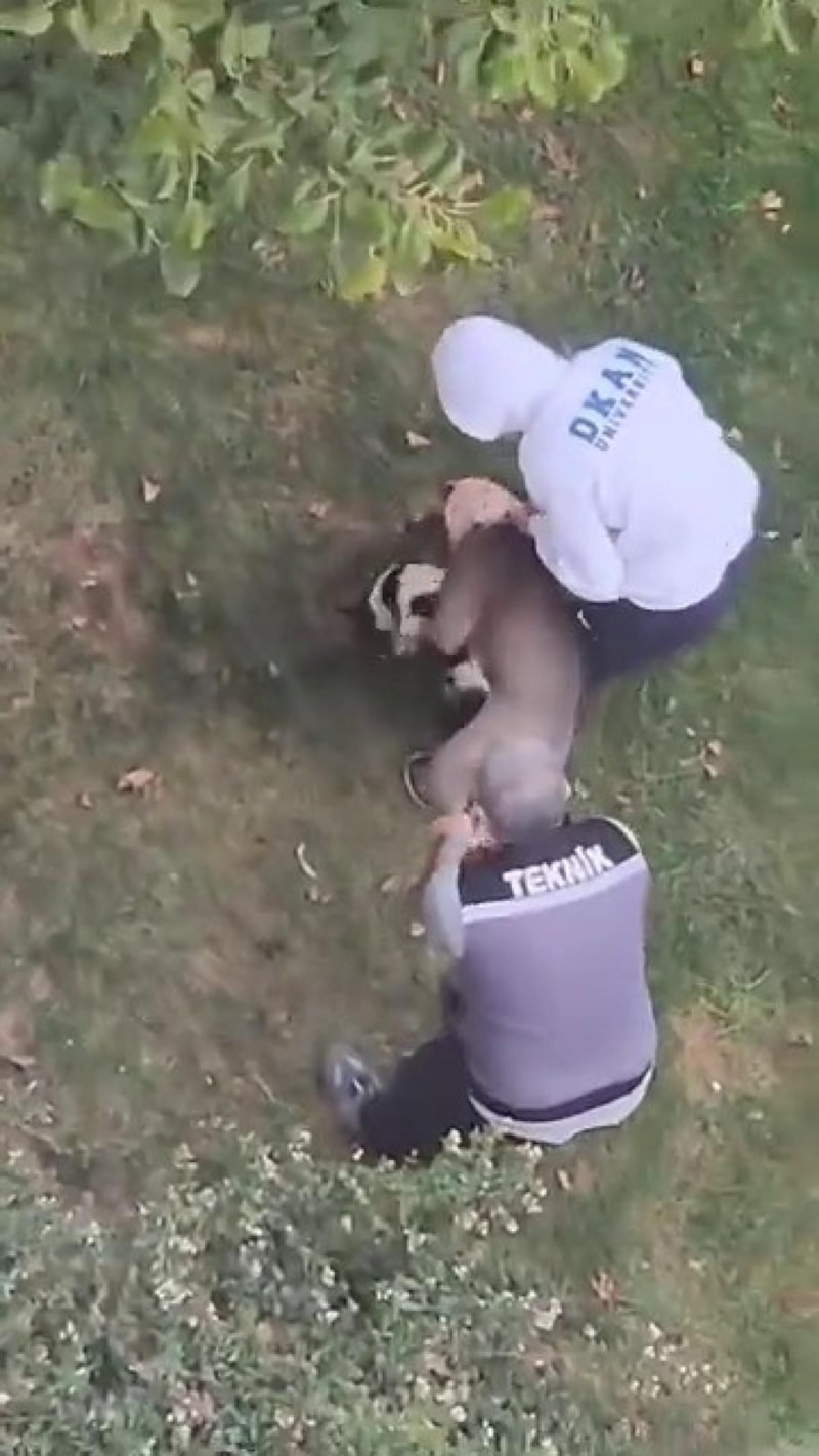 Köpeğin sahibi, saldırıya müdahale etmeye çalıştı ancak başarılı olamadı. Korku dolu o anlar bir site sakini tarafından cep telefonu ile kaydedildi.