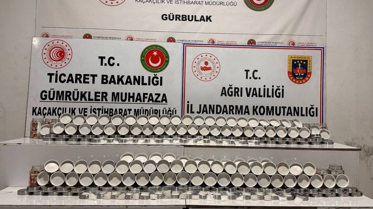 Yapılan aramada, boş cam kavanozlarının kapakları içerisine gizlenmiş vaziyette 170 kilogram sıvı metamfetamin ele geçirildi.