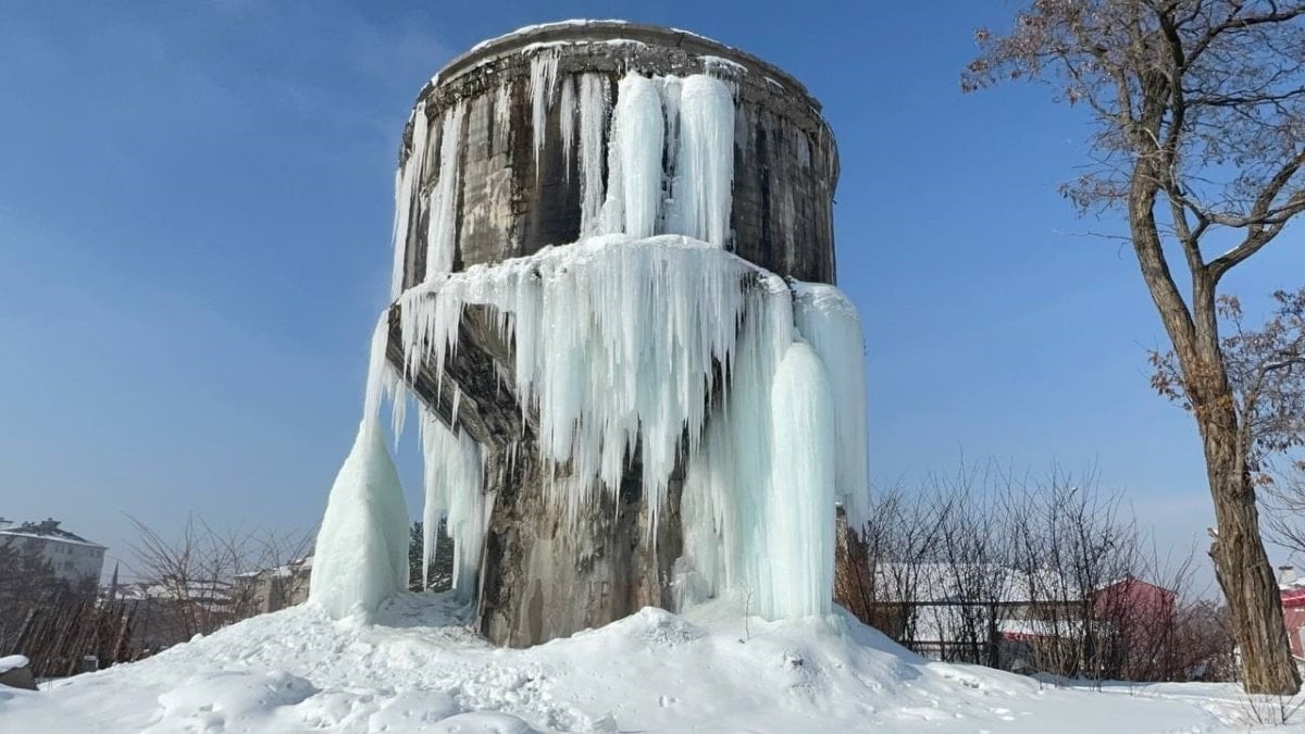 Ağrı'da gece saatlerinde etkisini artıran soğuklar nedeniyle kent merkezinde ağaçlar ve bitkiler kırağıyla kaplanırken, evlerin çatılarında metrelerce uzunlukta buz sarkıtları oluştu.