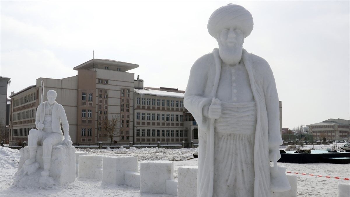 Millet Bahçesi'nde "Anadolu Masal Kahramanları" temasıyla gerçekleştirilecek festival öncesi, kardan heykeller yapılması için üniversitede görevli öğretim üyeleri ve öğrencilerden heykeltıraş ekibi oluşturuldu.
