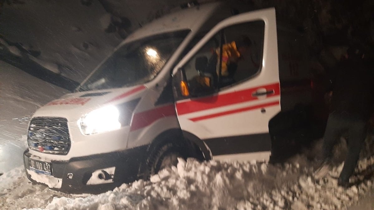 Yoğun kar yağışı nedeniyle köy yollarının kapalı olması sebebiyle hastaneye götürülemeyen hastanın yakınları, durumu sağlık ekiplerine bildirdi.