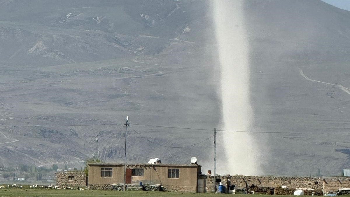 Ağrı'nın Doğubayazıt ilçesine bağlı Gültepe köyünde metrelerce yükseklikte hortum oluştu.
