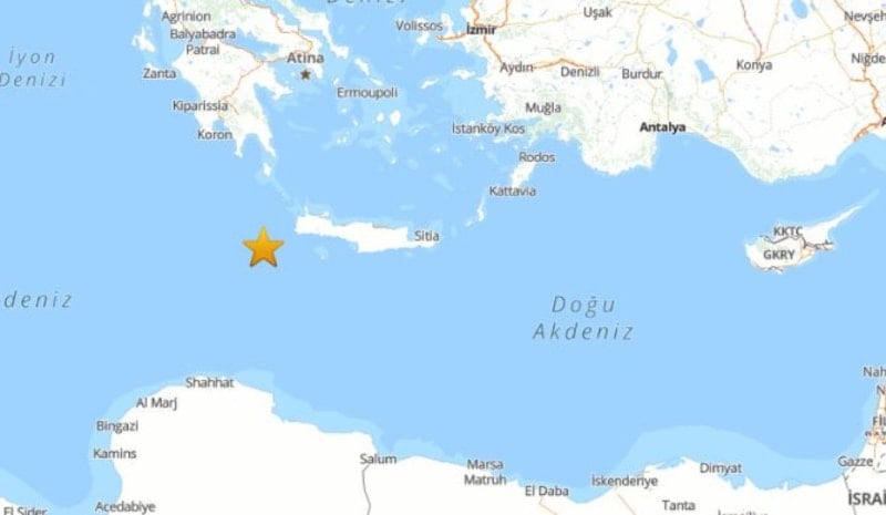Depremin koordinatları ise 35.02 kuzey enlemi ve 22.91361 doğu boylamı olarak belirlenirken, konumun Muğla'nın güneybatısı açıklarında olduğu belirlendi.