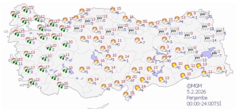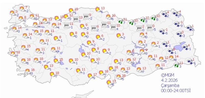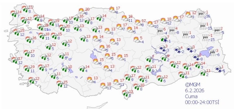 Bugün bazı kentlerde beklenen hava sıcaklıkları ise şöyle: