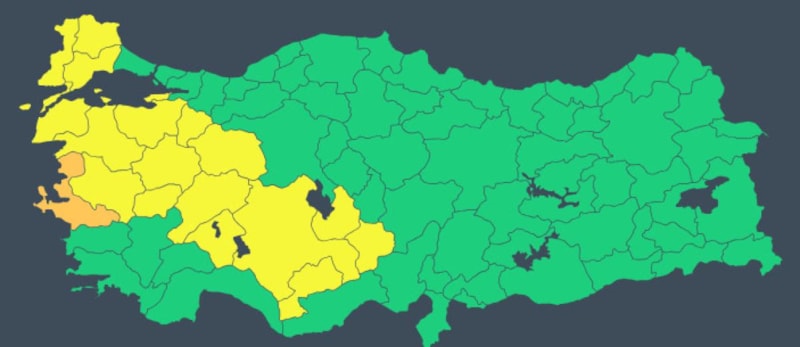 1 İLE TURUNCU, 18 İLE DE SARI UYARI