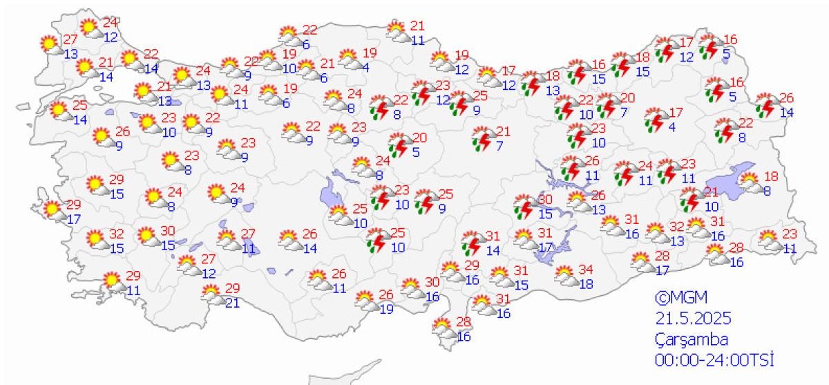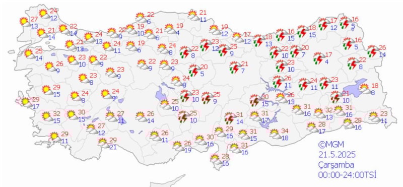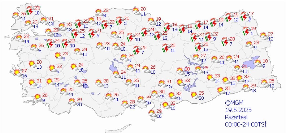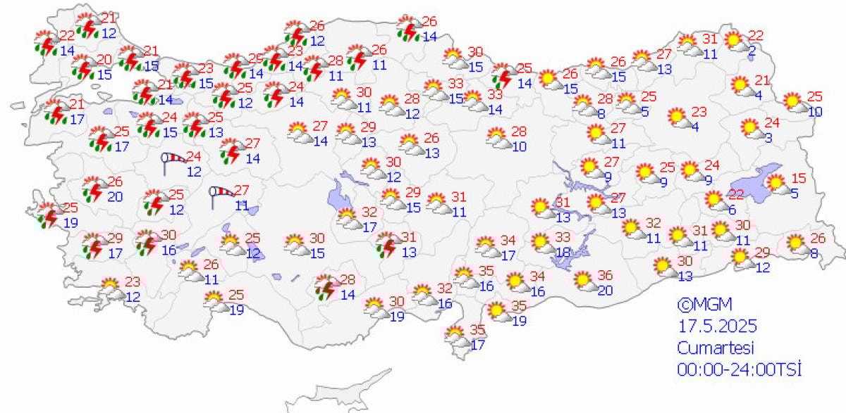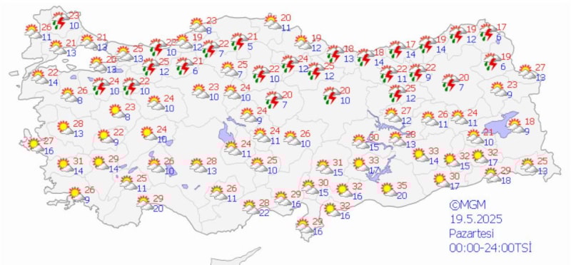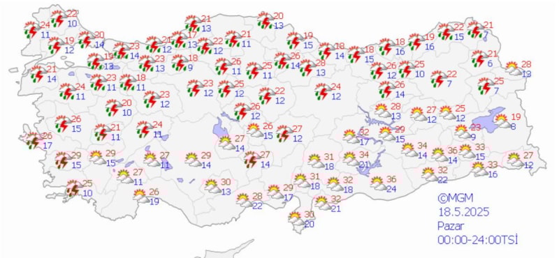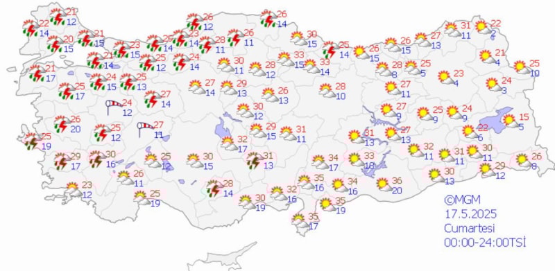 Yurdun batısında durum böyleyken Akdeniz, İç Anadolu, Doğu Karadeniz ve Doğu Anadolu'da ise bunaltıcı bir hava olacak.