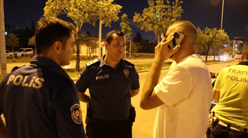 Araçtan inen A.K. (40) isimli sürücü alkollü olduğunu belirterek cep telefonuyla aradığı yakınını polis memurlarıyla görüştürmek istedi.