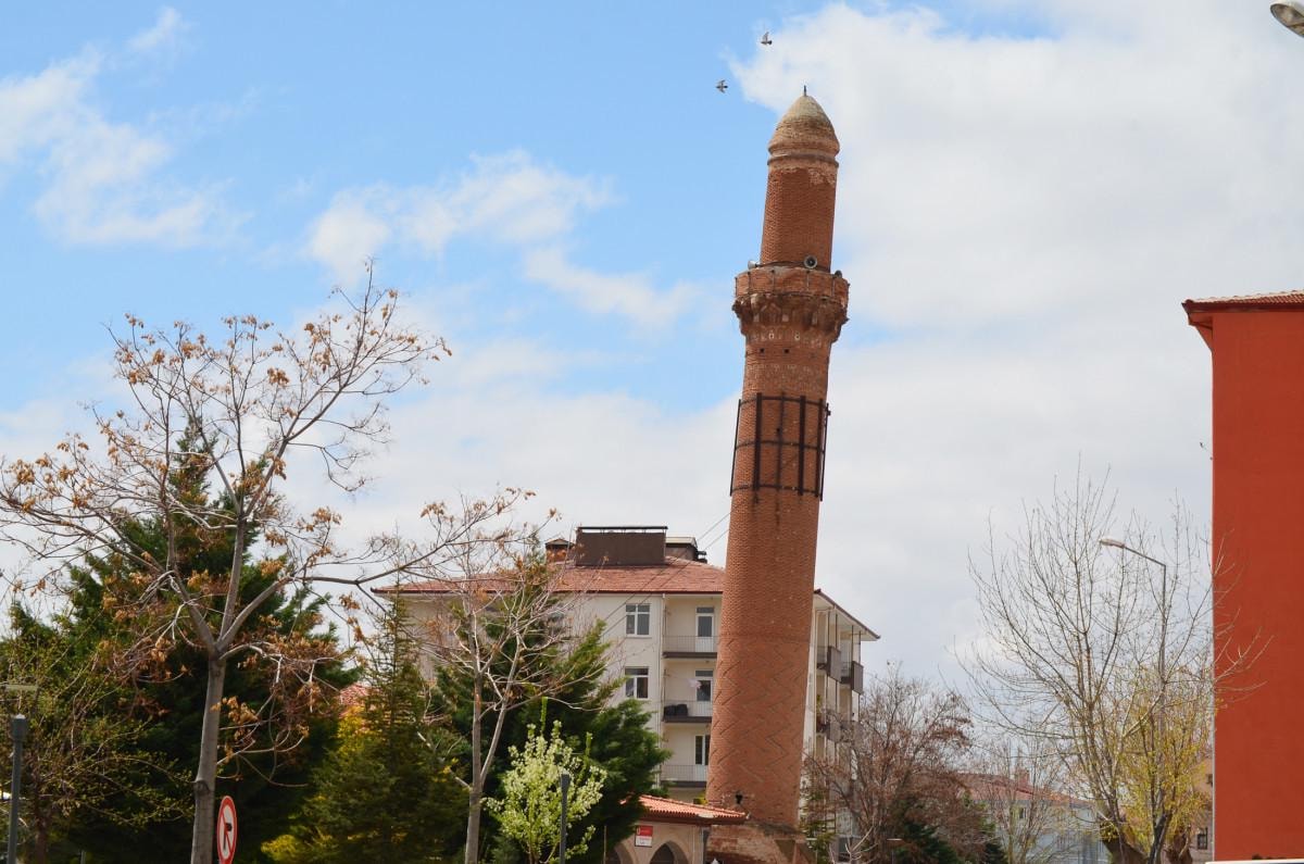 Gıyaseddin Keyhüsrev tarafından yaptırılan kent merkezindeki caminin yanına Horasan harcıyla kırmızı tuğladan yapılan minare, eğikliğiyle dikkat çekiyor.