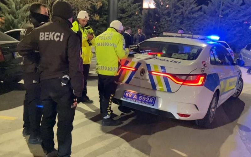 Uygulamalar çerçevesinde gece yarısı bir tesiste denetim yapan bölge trafik ekipleri tesisten çıkmak isteyen 68 EA 708 plakalı otomobili durdurdu.