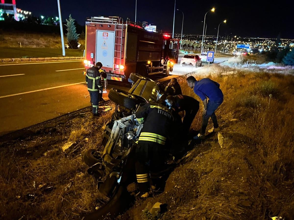 Çarpmanın etkisiyle Y.S. idaresindeki otomobil takla atarak şarampole düşerken sürücü ve yanında yolcu olarak bulunan B.Y. (20) yaralandı.