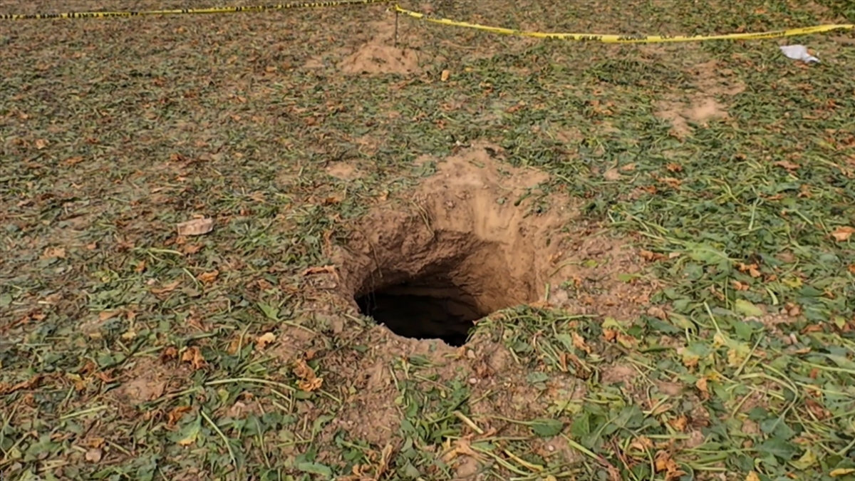 Gazi Mahallesi’nde sabah saatlerinde pancar tarlasında çalışan Mevlüt Ağır, arazisinin ortasında büyük bir çökme meydana geldiğini görünce durumu mahalle muhtarına ve jandarma ekiplerine bildirdi.