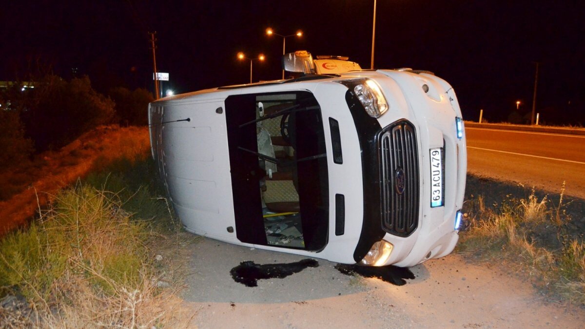 İstanbul'dan Şanlıurfa'ya giden Aziz Sahur (41) idaresindeki 63 ACU 479 plakalı minibüs, petrol istasyonundan yakıt aldıktan 150 metre sonra yolcuların aralarında şakalaşmasını uyarmak için arkasına dönen şoförün direksiyon hakimiyetini kaybetmesi sonucu şarampole devrildi.