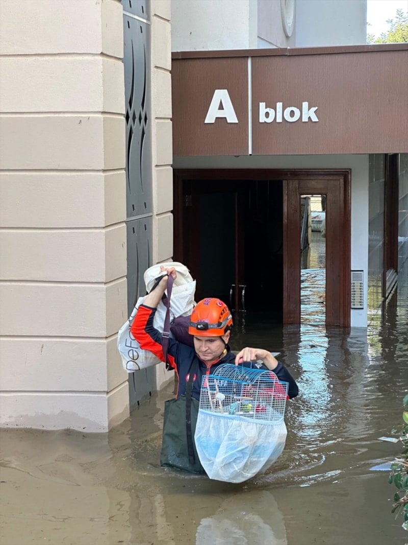Su baskını yaşanan bölgelerde mahsur kalan vatandaşlar ve evcil hayvanlar, AFAD ekipleri tarafından botlarla tahliye edildi.
