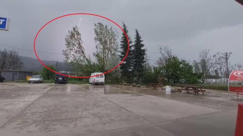 Amasya'da cep telefonuyla canlı yayında oyun oynayan gencin önünde bulunduğu binanın üzerine yıldırım düştü. Patlama sesi ve görüntüler kameraya anbean kaydedildi..
