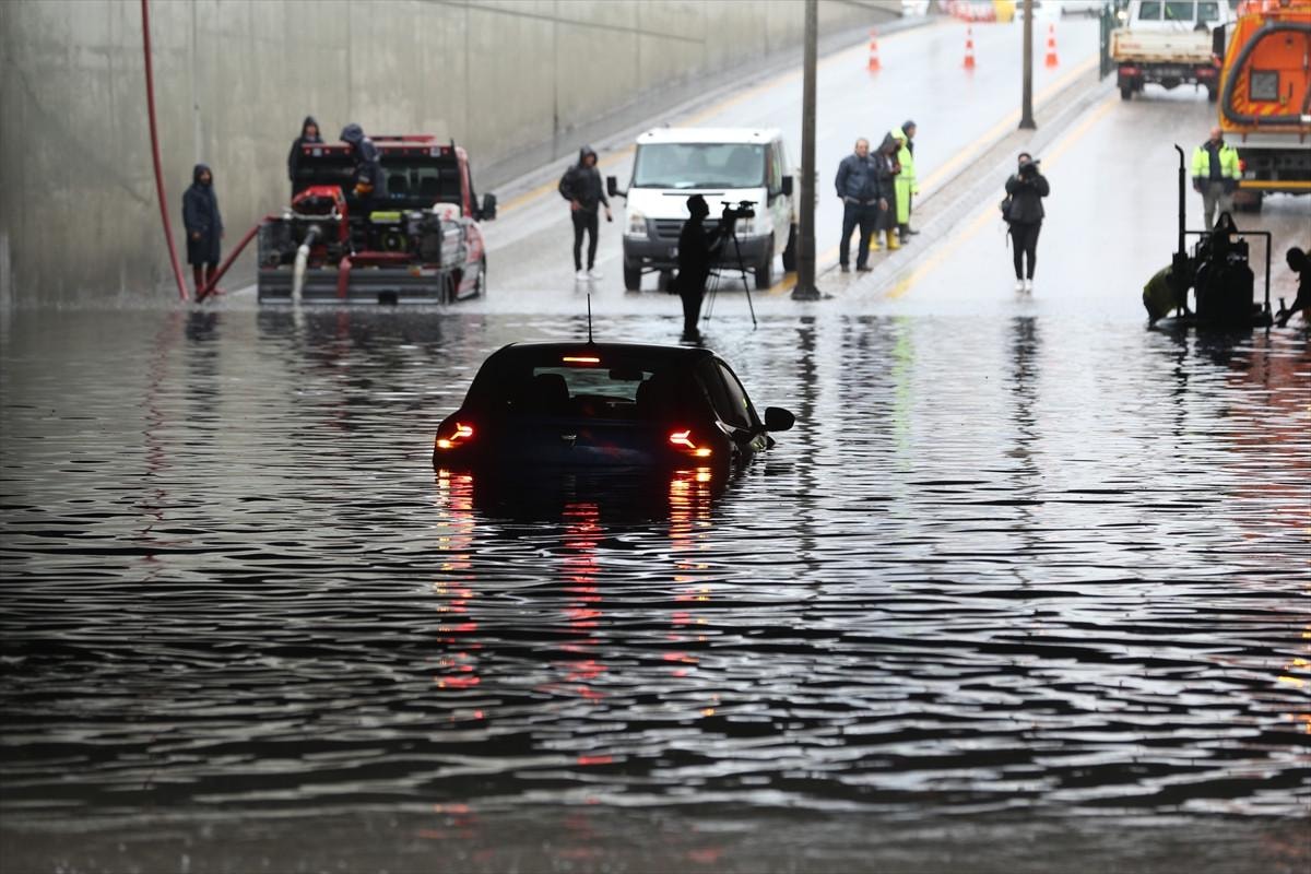 Başkent'te kuvvetli yağış nedeniyle bazı cadde ve sokaklar ile alt geçitlerde su birikintileri oluştu.
