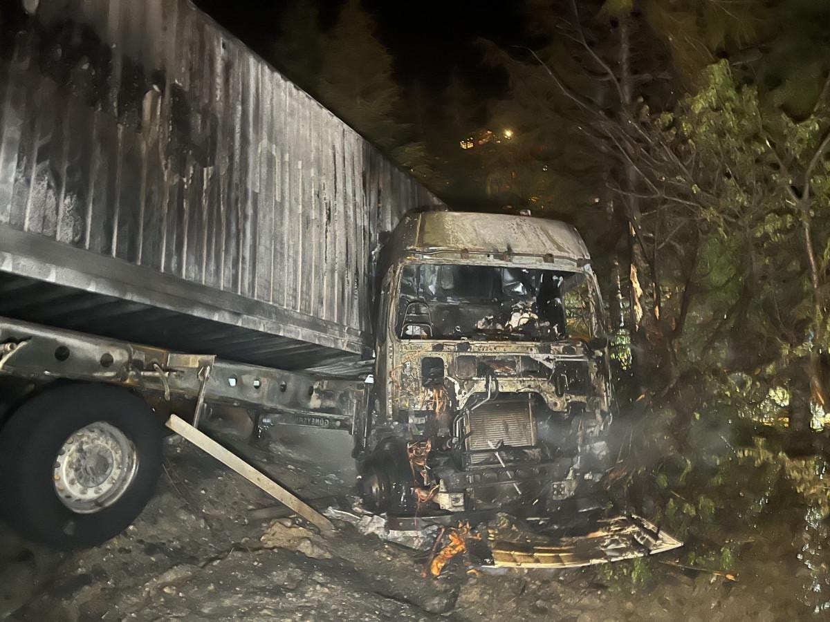 Sürücü kendi çabası ile kurtulurken, itfaiye ekiplerinin çalışmaları sonucunda söndürülen tır kullanılamaz hale geldi.