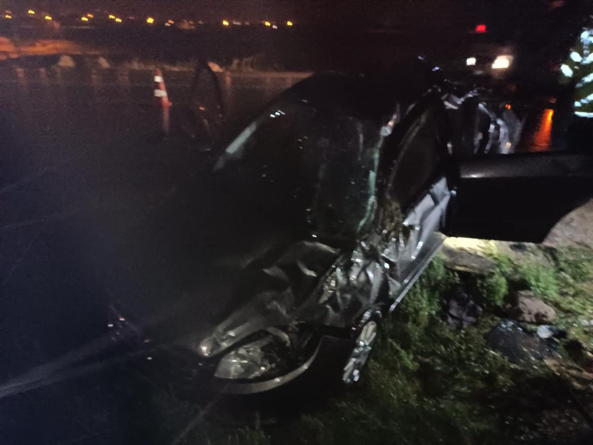 Akşam saatlerinde Ankara genelinde etkili olan sağanak yağış nedeniyle Elmadağ ilçesi Lalabel mevkiinde kontrolünü kaybederek yoldan çıkan 16 R 8754 plakalı araç bariyerlere çarptı.