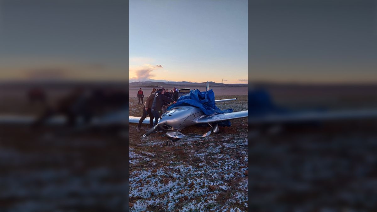 Yüksek Hızlı Tren hattına yakın bir bölgede tarlaya başarıyla inen uçağın pilotları kazadan yara almadan kurtuldu.