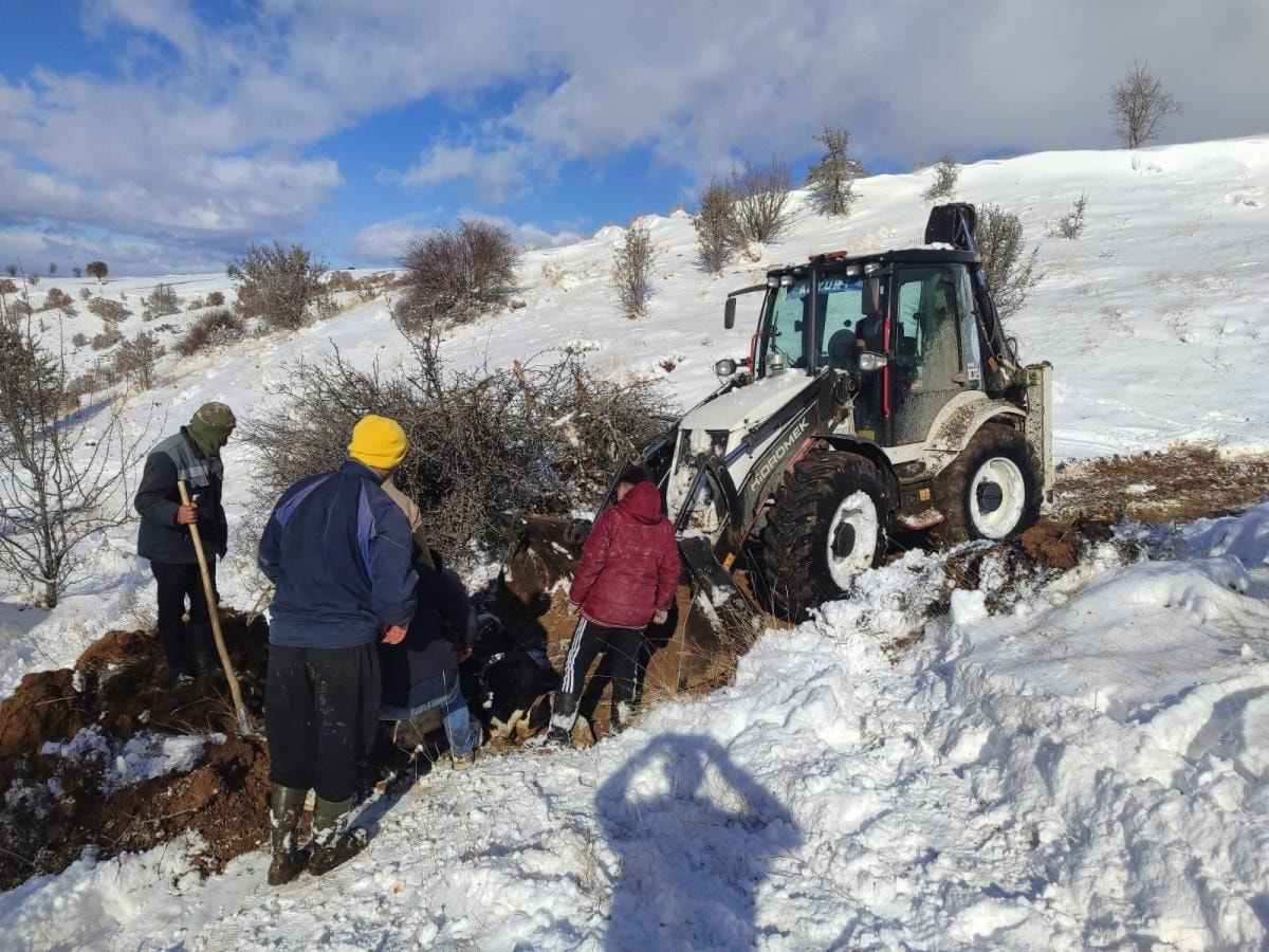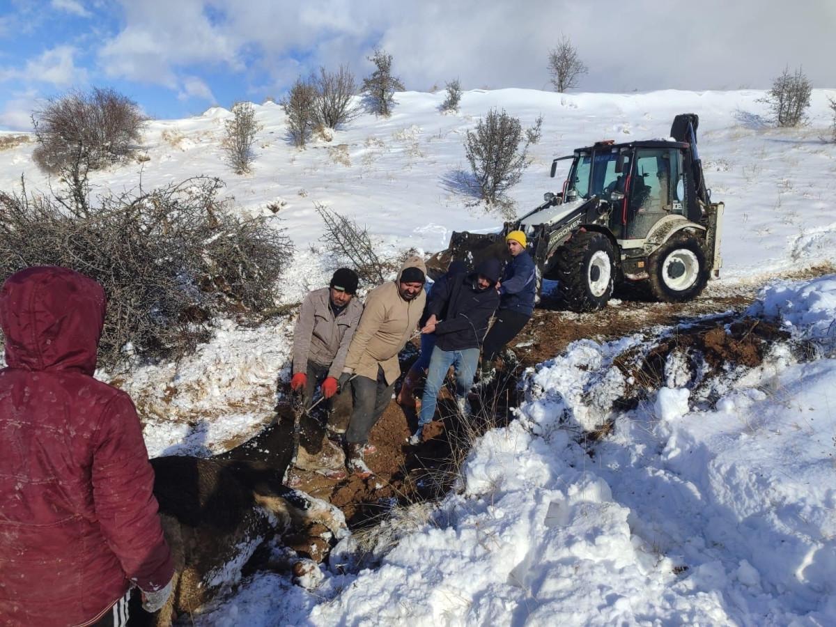 Hayvanların sahibinin ihbarı üzerine harekete geçen ekipler, zor arazi şartlarına rağmen hayvanlara ulaştı.