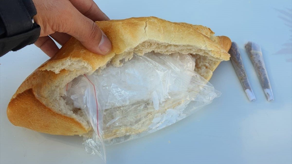 Arama yapılan otomobilde ekmek arasına zulalanan 250 gram metamfetamin bulundu.