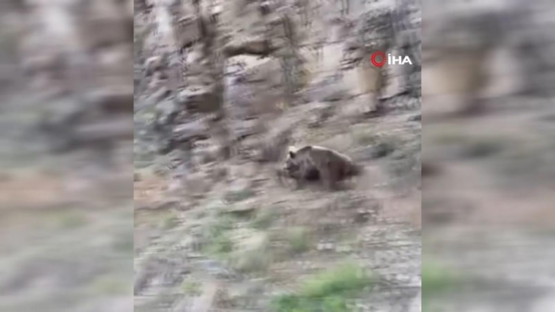 Ankara'da Beypazarı ilçesinde Karaşar Mahallesi'nde evine gitmek için yola çıkan bir vatandaş, yolda 3 tane ayı ile karşılaştı.