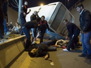 Çankaya'da Celal Bayar Köprüsü'nden korkulukları yıkarak aşağı uçması sonucu yaralanan 13 kişinin kimlikleri belirlendi. Kazada, Fırat Akıcı (23), Ramazan Dursun (36), Gökhan Özdemir (31), Emrah KARAGÜL (26), Ufuk Doğanak (35), Ali Kılıç (56), Meryem Altuntaş (24), Esengül TOYBOĞA (46), Mikail Dede (53), Gökhan Toyboğa (23), Engin Uçum (30), Ahmet Güler (28) yaralandı. Yaralılar çevredeki hastanelere kaldırılırken, Suat Kantarcı yapılan tüm müdahalelere rağmen kurtarılamadı.