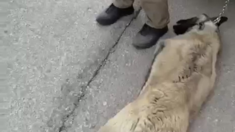 Ankara'nın Yenimahalle ilçesinde kamyonetin arkasına boynundan zincirle bağlanarak sürüklenen köpeği gören vatandaşlar aracı durdurarak sürücüye tepki gösterdi.