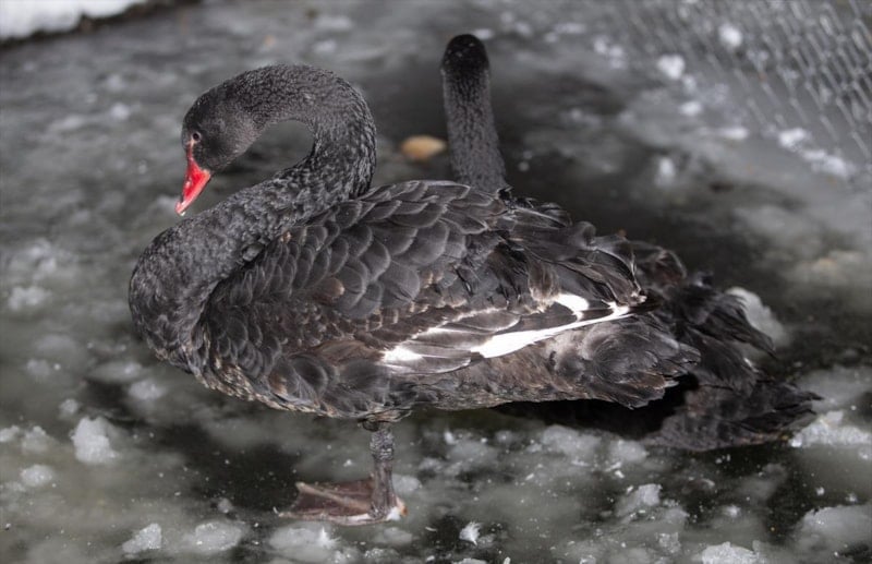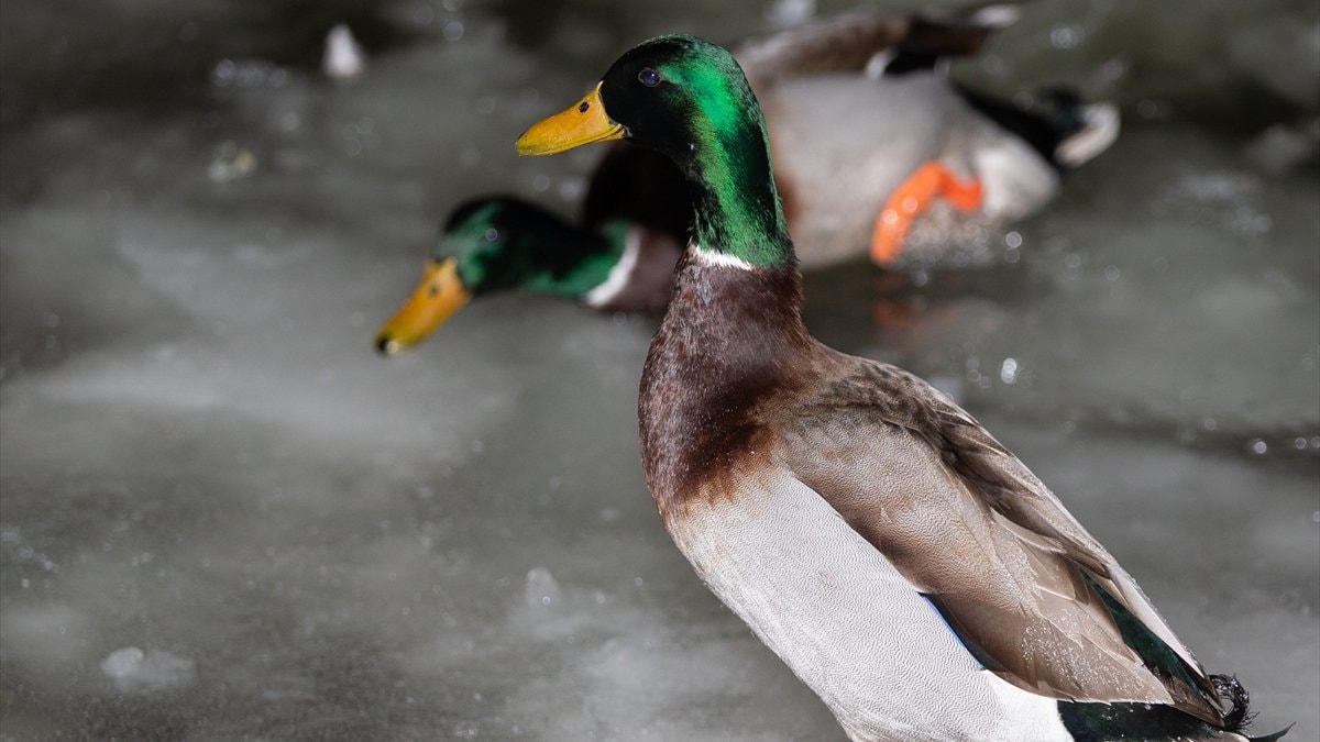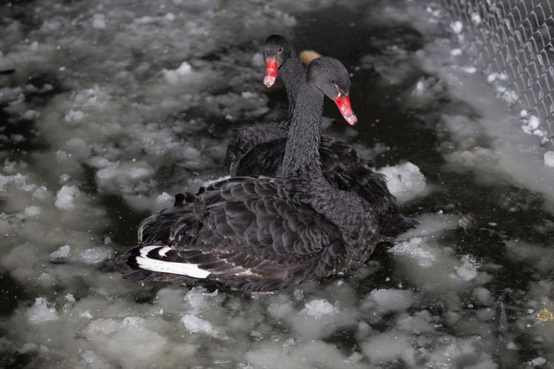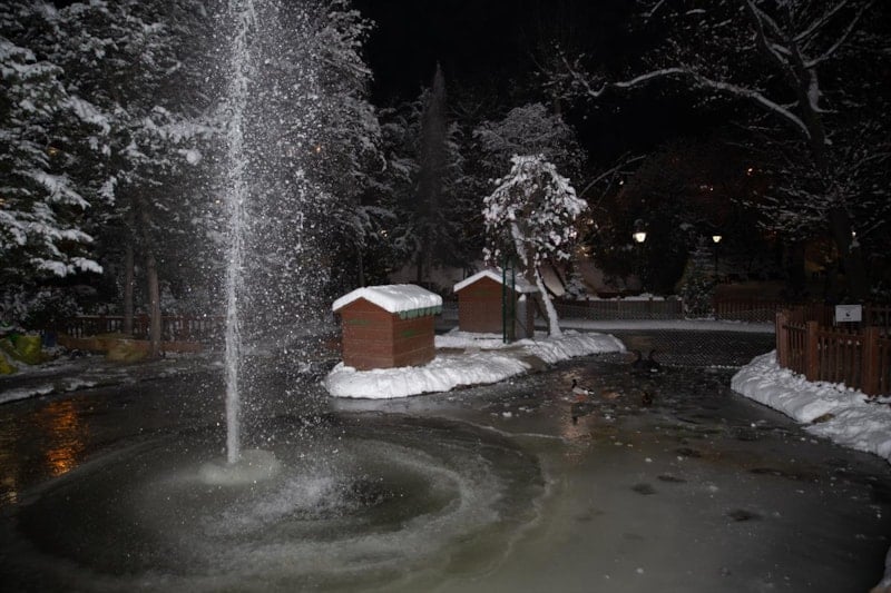 Parkın ev sahipleri kuğular ve ördeklerin yaşam alanları, bazı kısımları donan havuzdaki fıskiyelerden çıkan suların buz kalıpları oluşturmasıyla daraldı.