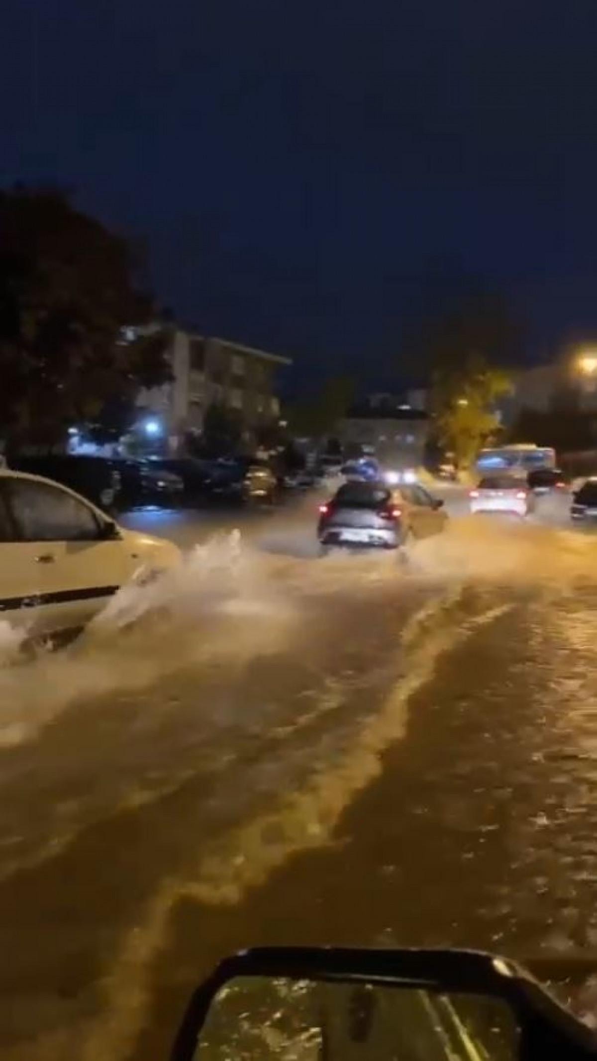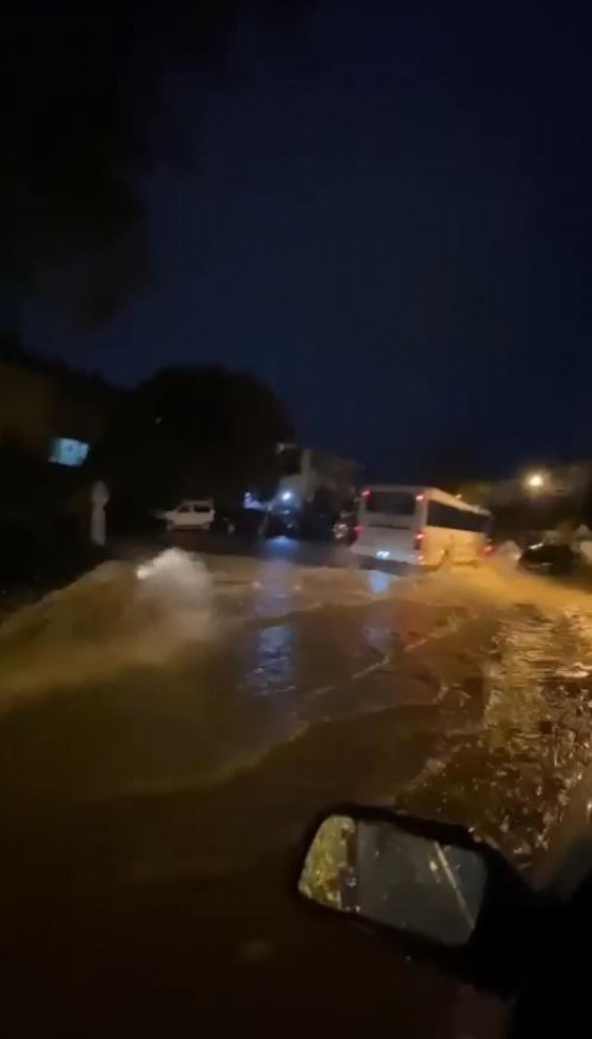 Sağanak sonrası yollar göle döndü