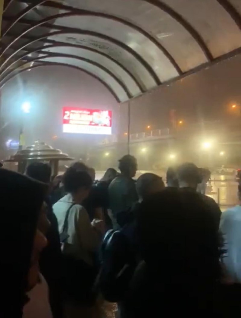 Metrodan inmek zorunda kalan vatandaşlar durakta mahsur kaldı.