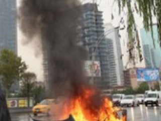 Sinir krizi geçiren araç sürücüsünü çevredeki vatandaşlar sakinleştirmeye çalıştı. İtfaiye ve polis ekipleri yangının çıkış nedenini araştırıyor