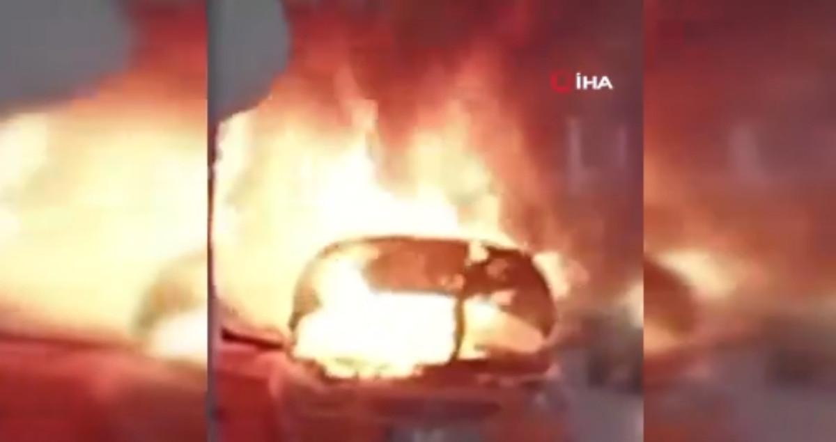 Olay yerine gelen itfaiye ekipleri yanan aracı söndürdü.