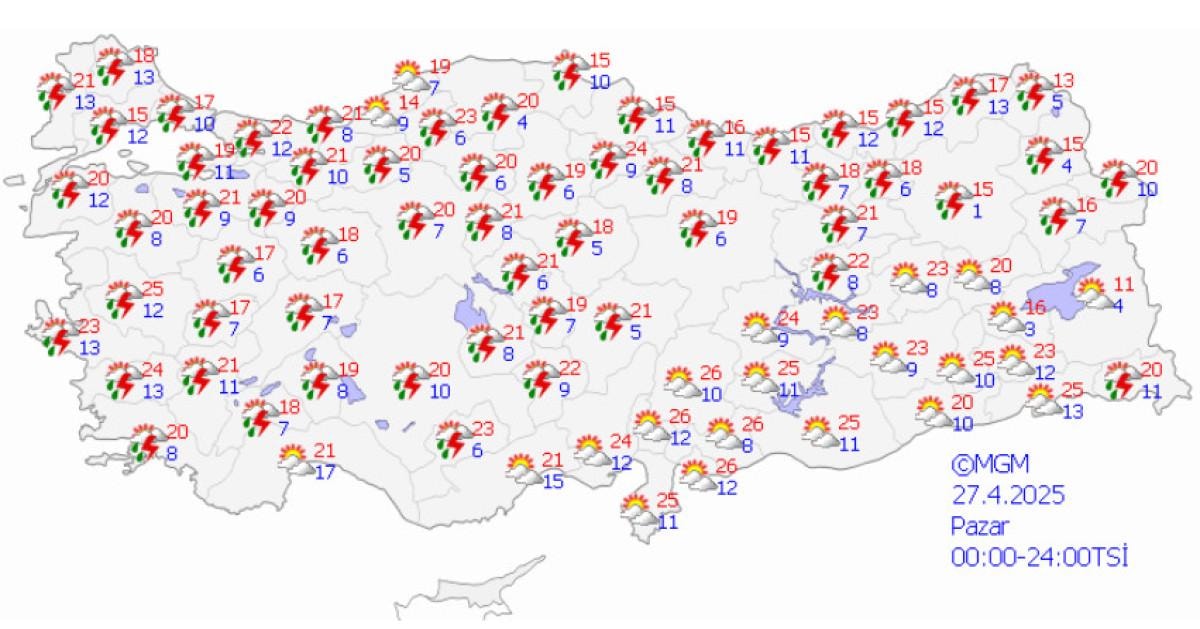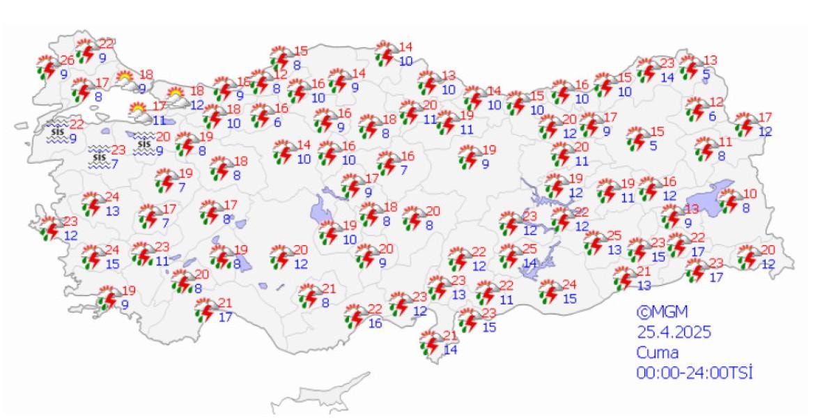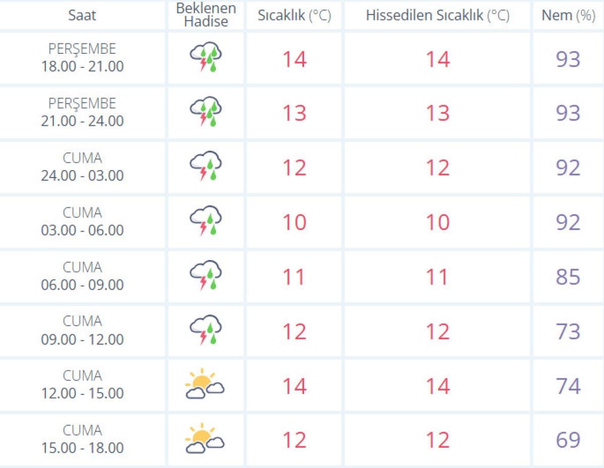 Öte yandan Meteoroloji'nin tahminlerine göre, yağışların Cuma günü öğle saatlerine kadar sürmesi bekleniyor..