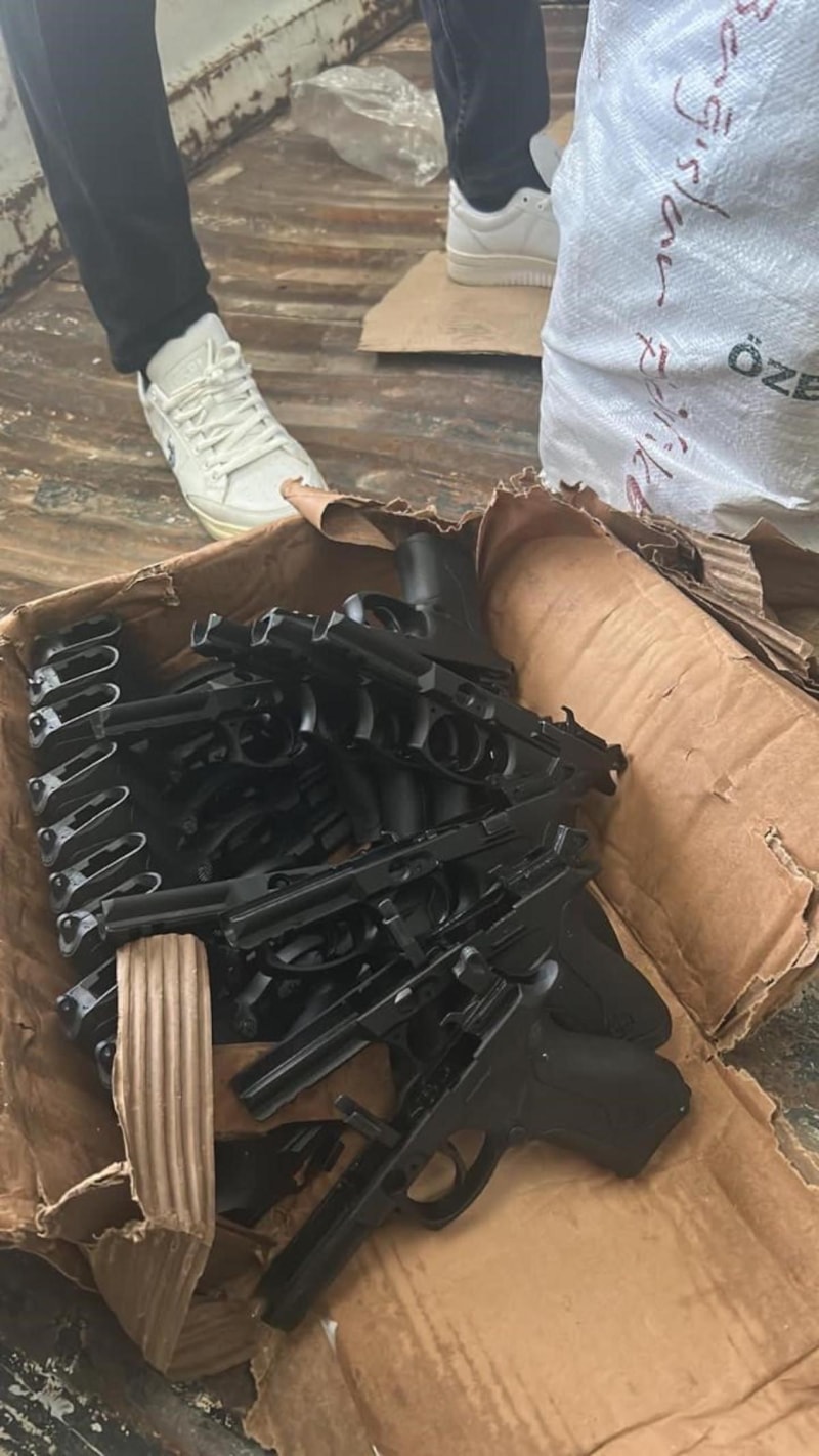 İş yerinde yapılan aramada 100 ruhsatsız tabanca ve 970 silah parçası ele geçirildi.