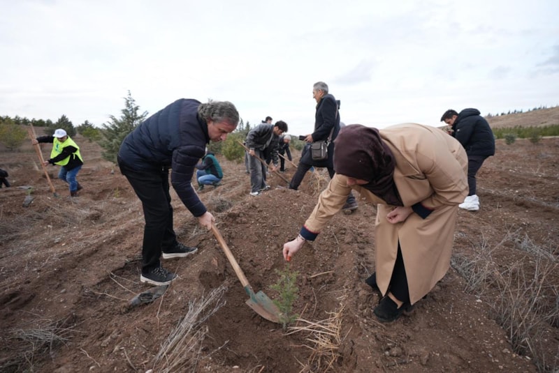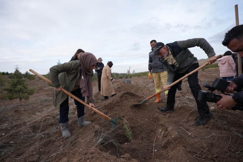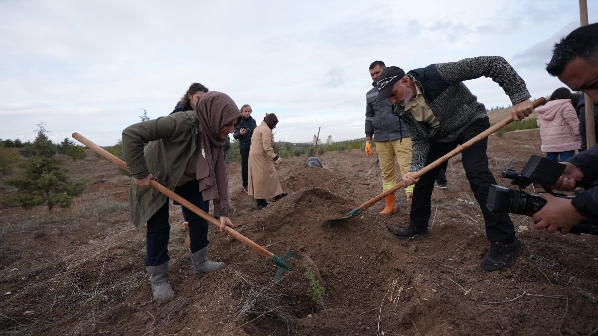 TUSAŞ çalışanları ve gönüllüler, şehit Muharrem Can ile Zahide Güçlü Ekici anısına oluşturulan hatıra ormanlarında toplam 7 bin 800 fidan dikti.