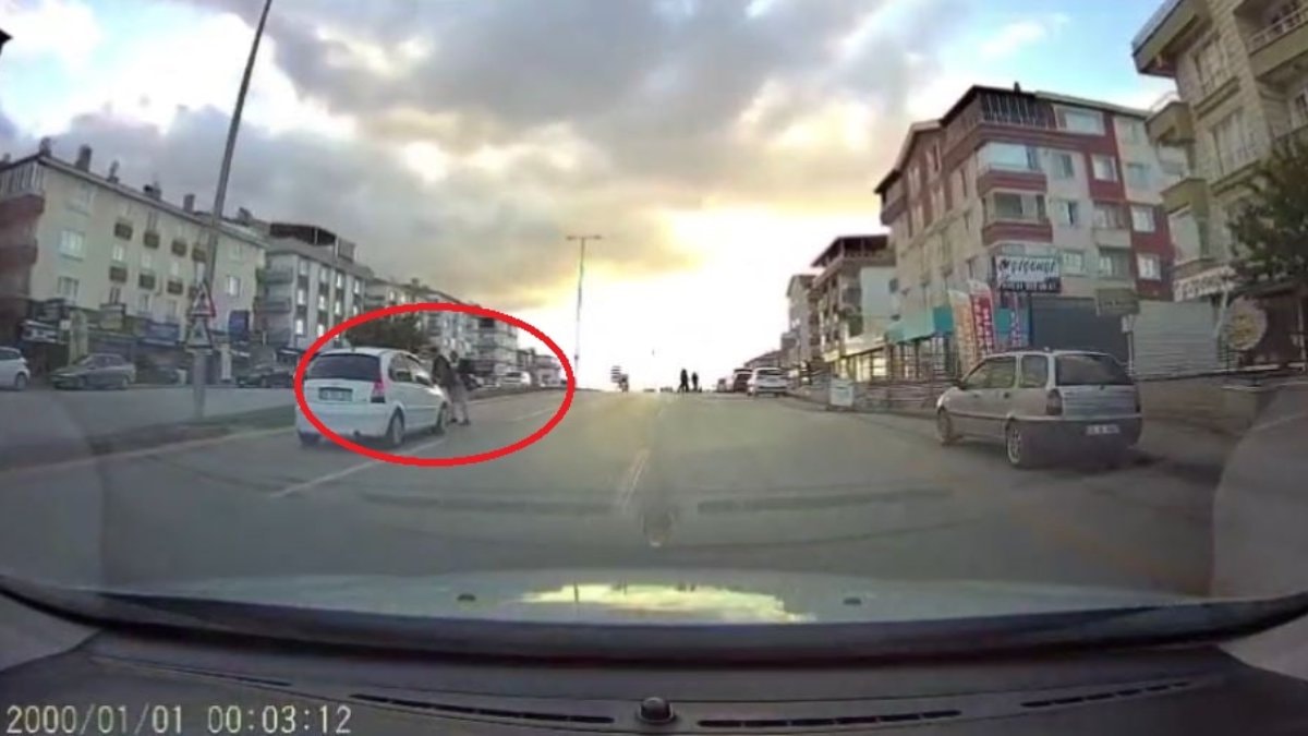 Kaza anı, başka bir otomobilin araç kamerasına anbean yansıdı.