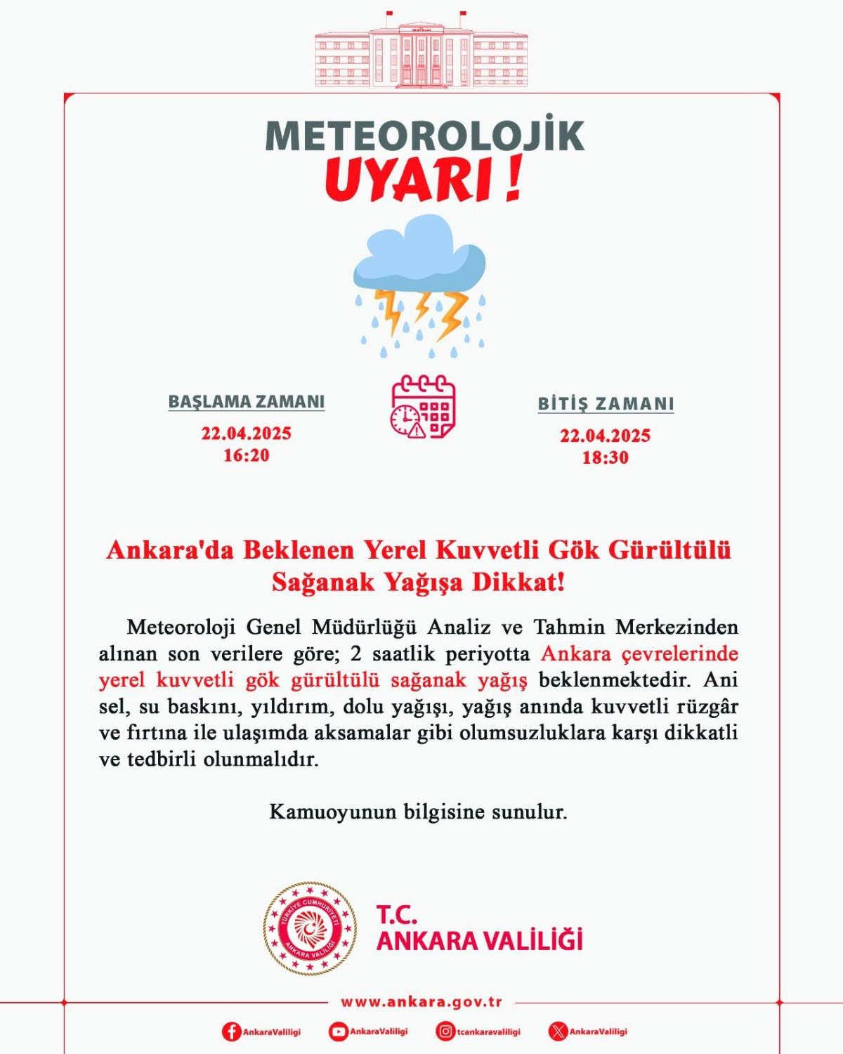 Özellikle Ankara için Meteoroloji ve Valilik'ten peş peşe uyarılar geldi.