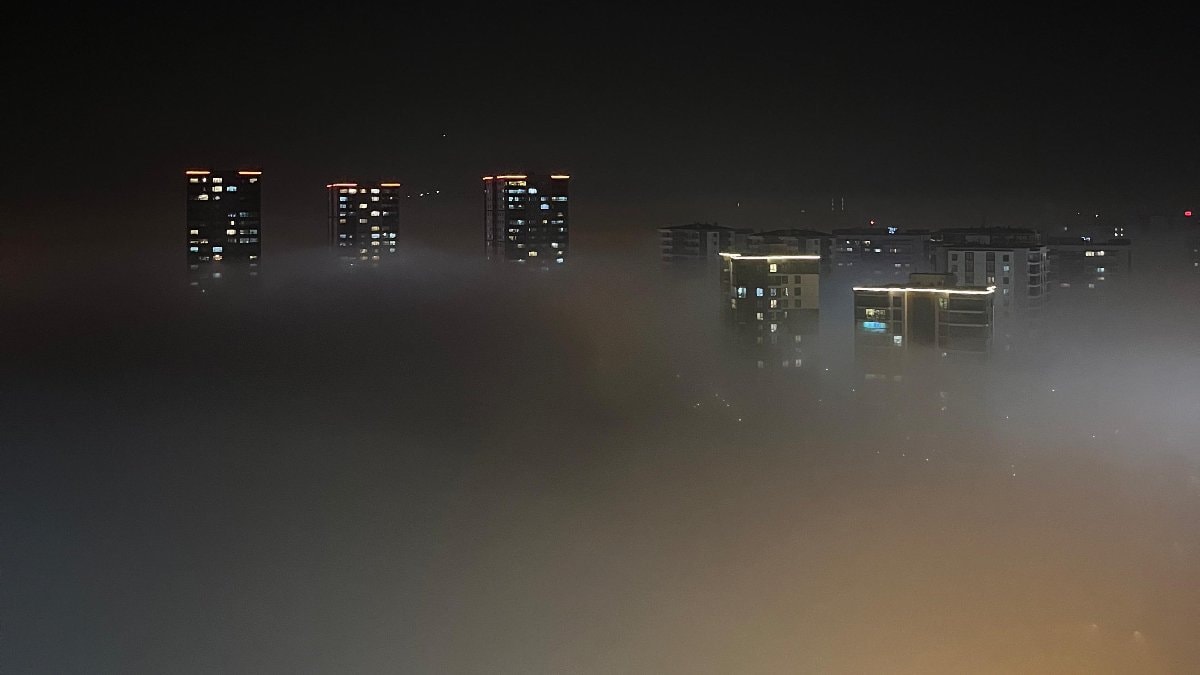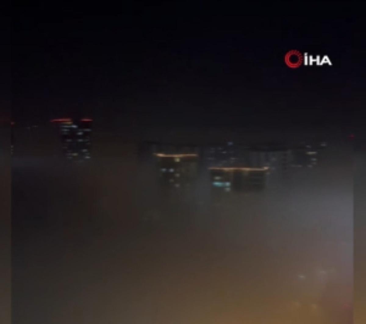 Öte yandan şehri kaplayan sis havadan görüntülendi.