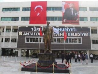 Antalya Büyükşehir Belediyesi girişine Atatürk heykeli ViDEO