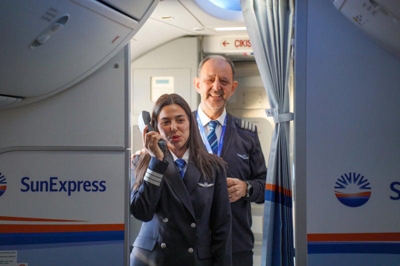 İlk defa birlikte uçan baba-kıza, aileleri ile yakınları da eşlik etti. Cemresu Sarıhan, uçuş öncesi yolculara kısa bir anons yaparak, bu uçuşun kendisi ve babası için önemini anlattı.