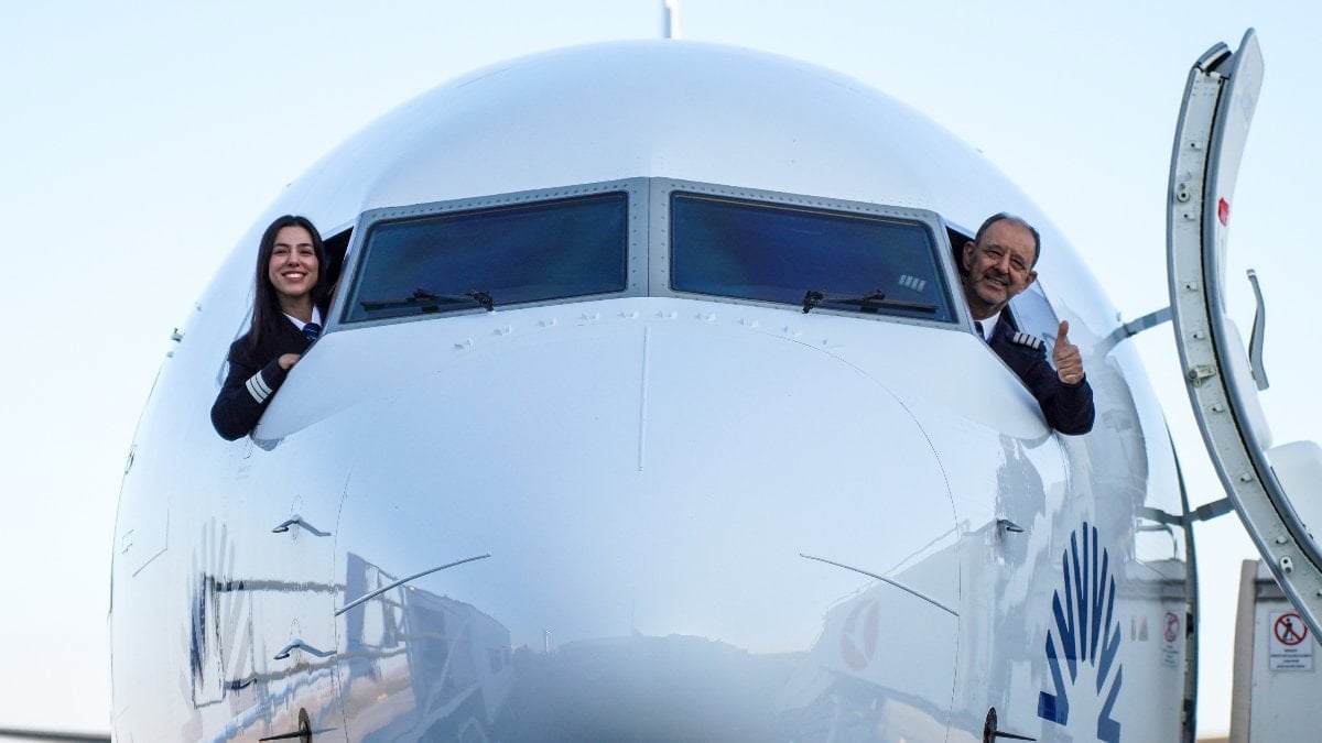 Emekli olma kararı alan Ali Akman Sarıhan'ın son uçuşunda, 2'nci pilot koltuğunda kızı Cemresu Sarıhan yer aldı.